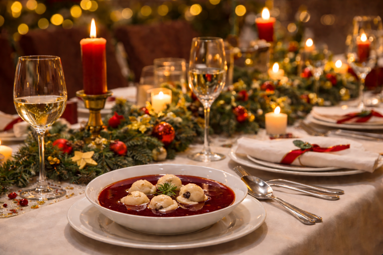• uroczysta kolacja wigilijna + woda, kawa, herbata